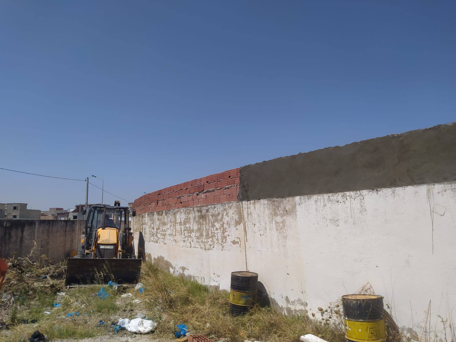 بتعلية الجدار الفاصل بين القاعة المغطاة و الملعب البلدي لتوفير الحماية المتطلبة للمنشآت الرياضية مع القيام بتنظيف قنوات تصريف مياه الأمطار بالمنطقة