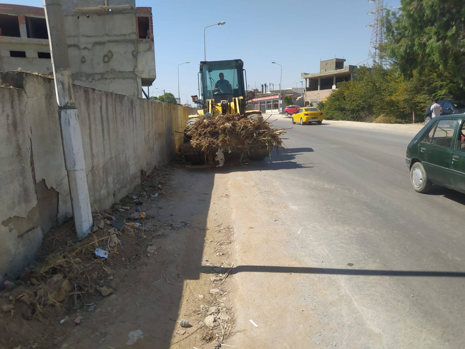 الصناعية و تقليع الأعشاب و رفع الأتربة بمقبرة سيدي مروان والعمل متواصلليشمل كامل المنطقة البلدية إن شاء الله