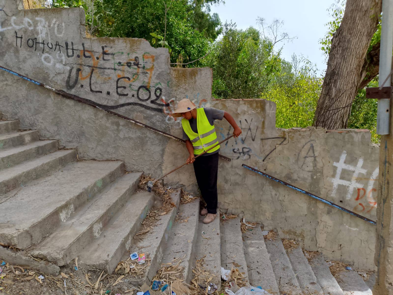 تنظيف وكنس ورفع الأوساخ بكل من فضاء وممر السوق الأسبوعي بقلعة الأندلس
