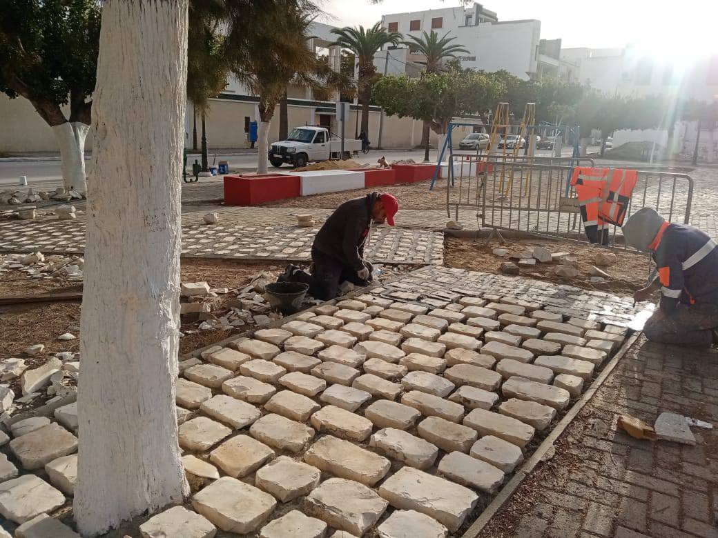 تواصل أشغال إعادة تعشيب مفترق "المالوف" والمساحات الخضراء المحيطة به والشروع في الإعداد لإعادة تعشيب كل من مفترق "عجيل" ومفترق جامع "الغفران" بعد إتمام إعادة تعشيب مفترق الزيتونة والمساحات المحيطة به وقد تم