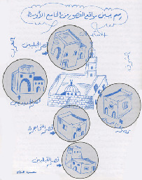 و وبمجرد حلولهم بها انقسموا إلى خمسة عشائـر امتازت كلّ عشيرة بناحية معيّنة من الشعبة فبنوا على أعلى مكان منها قصورهم الخمسة يتوسطها الجامع الذي يعرف بالجامع الأوسط. والقصور الأولى المكوّنة لمدينة مساكن هي :